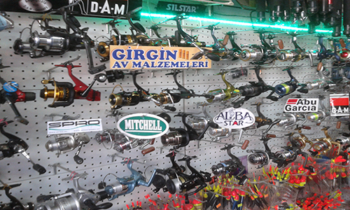 Balık avı ekipmanları satışı yapılır.